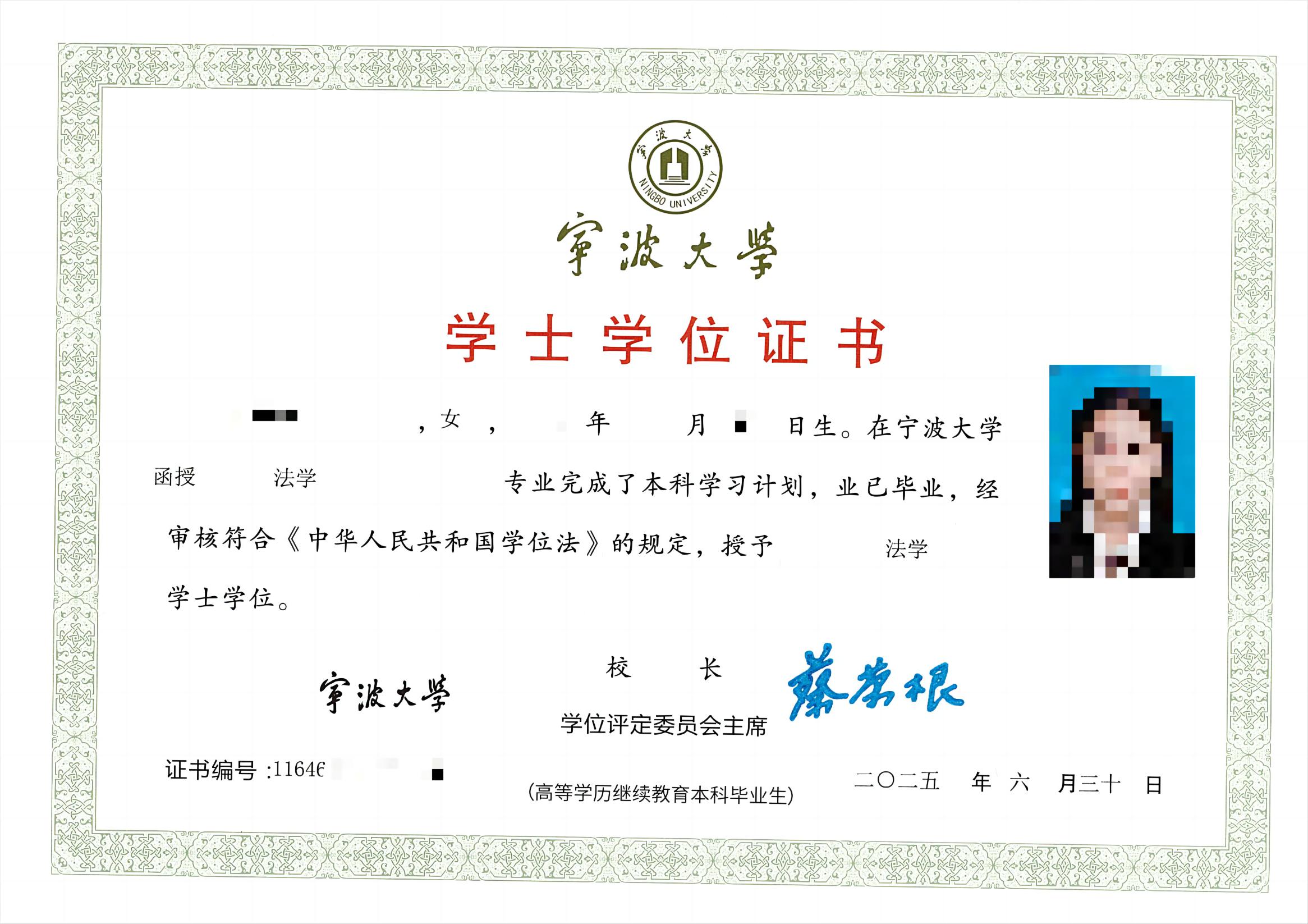 學(xué)生修滿本專業(yè)教學(xué)計劃規(guī)定的學(xué)分,成績合格,符合畢業(yè)條件者,由寧波大學(xué)頒發(fā)經(jīng)教育部電子注冊的高等學(xué)歷繼續(xù)教育畢業(yè)文憑;符合學(xué)士學(xué)位授予條件的本科畢業(yè)生,授予學(xué)士學(xué)位。