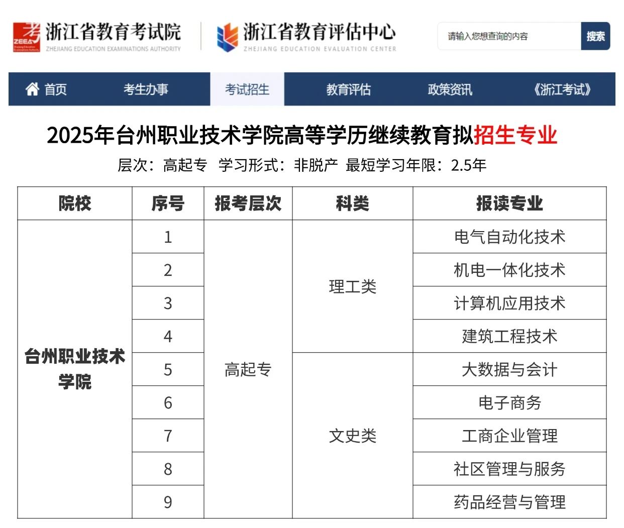 2025年臺州職業(yè)技術學院高等學歷繼續(xù)教育招生簡章