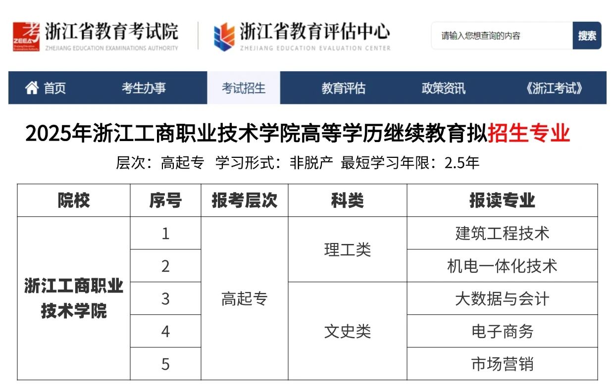 2025年浙江工商職業(yè)技術(shù)學(xué)院高等學(xué)歷繼續(xù)教育招生簡章