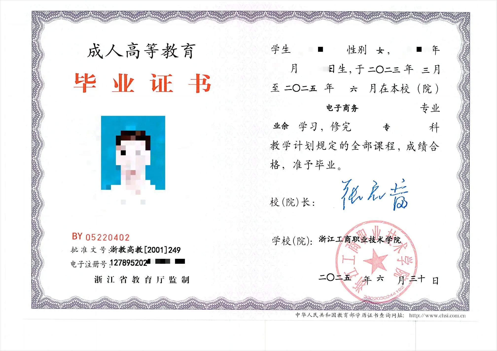 凡被我院正式錄取的考生,在規(guī)定學(xué)習(xí)年限內(nèi)修完教學(xué)計劃規(guī)定的課程并考核成績合格,所獲總學(xué)分達(dá)到畢業(yè)最低學(xué)分要求的,頒發(fā)國家認(rèn)可、中國高等教育學(xué)生信息網(wǎng)(學(xué)信網(wǎng))電子注冊的成人高等教育畢業(yè)證書。